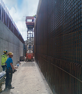 Til samling af armeringen anvender EMR nogle steder mekaniske koblinger af mærket Griptec fra Celsa – i alt 2500 sådanne koblinger bruges i hele kælderbyggeriet.