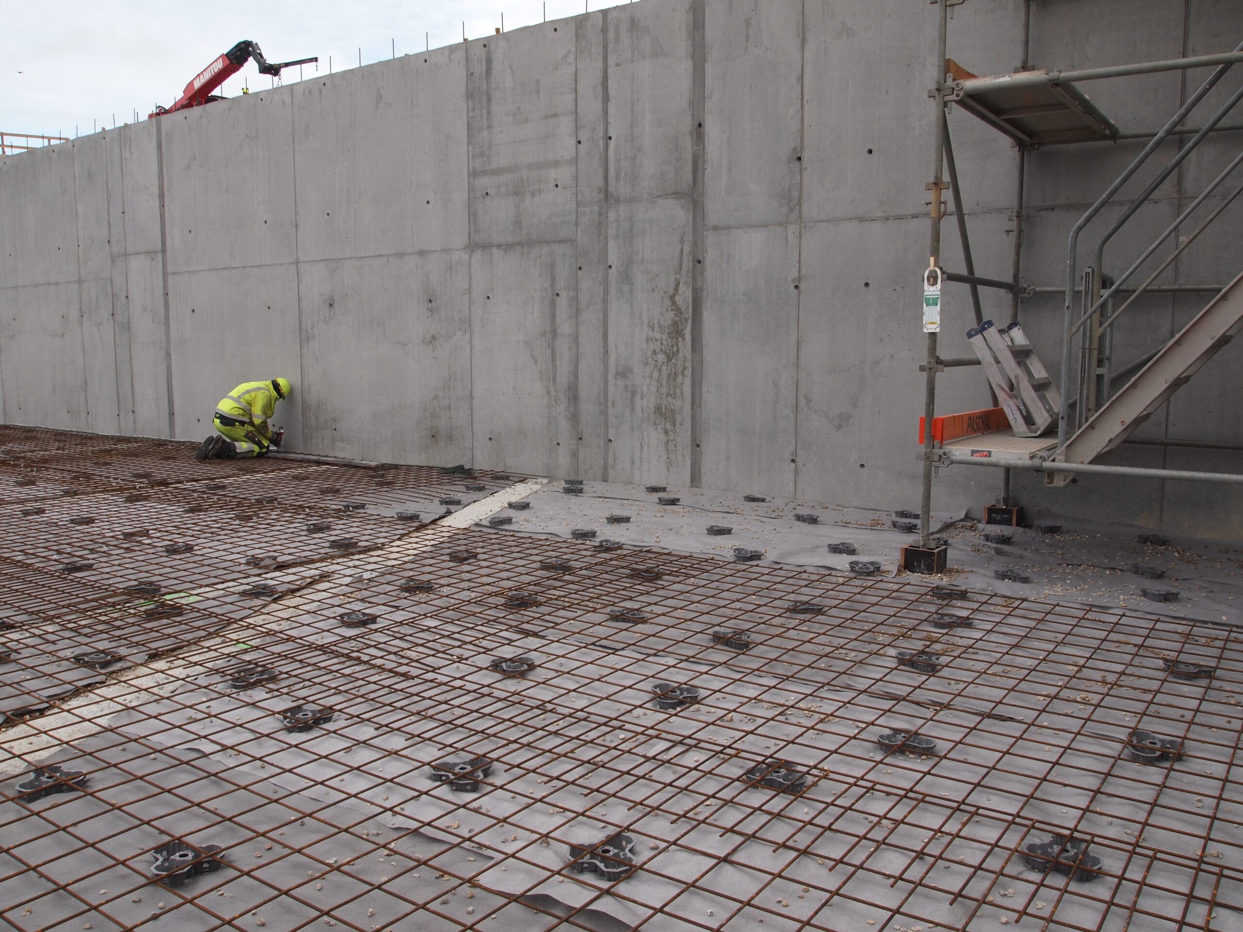 Mens traditionelle afstandsholdere ”clipses” på armeringsnettet, udlægges Speedies® hurtigt på grunden med et enkelt specialværktøj, hvilket har effektiviseret armeringsopgaven på Sct hans hospital betydeligt.